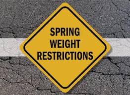Notice: Spring weight limits on all town roads begin Thursday, March 5, 2026. The weight limits are 6 tons per axle and 10 tons per tandem axles under 8 feet apart.